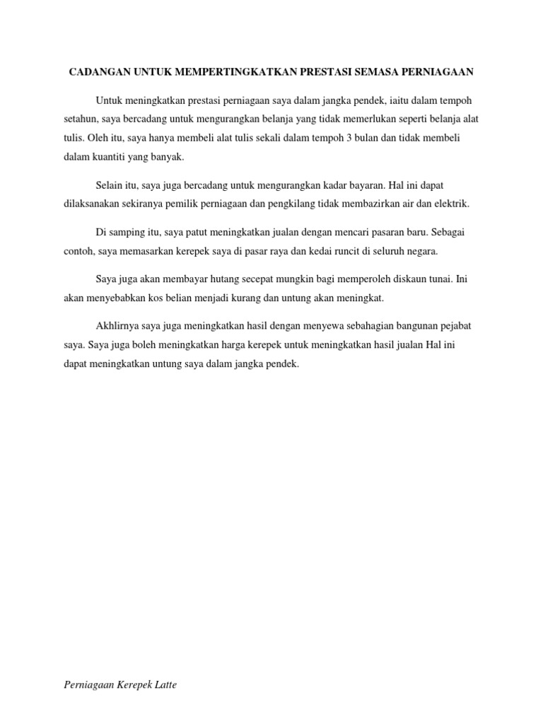 Cadangan Untuk Mempertingkatkan Prestasi Semasa Perniagaan Pdf